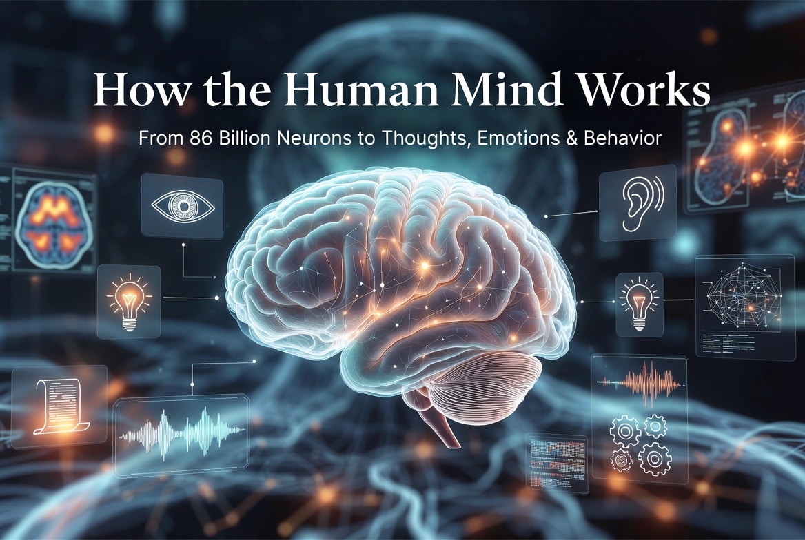 The human mind is the set of cognitive, emotional and behavioral capacities produced by the brain’s networks of neurons and supporting structures. Conscious processes arise from coordinated activity in cortex, thalamus and subcortical circuits while unconscious processes run in parallel and shape behavior. See a recent review at PubMed/NCBI for deeper reading.